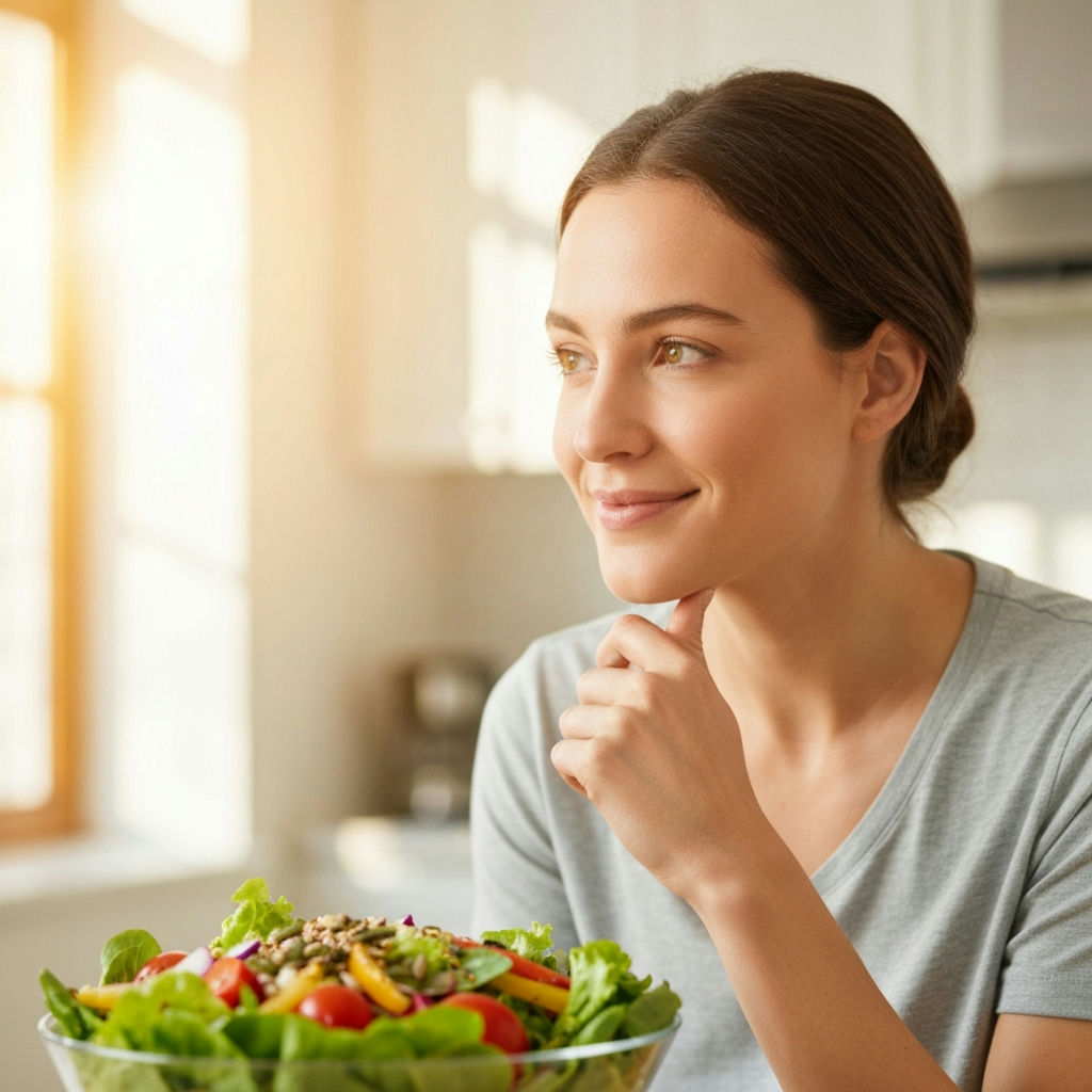 Setze auf viel Gemüse, Vollkornprodukte, gesunde Fette und ausreichend Eiweiß. Reduziere Zucker, Fertigprodukte und stark verarbeitete Lebensmittel. Weitere Tipps findest du unter Abnehmen ohne Diät.