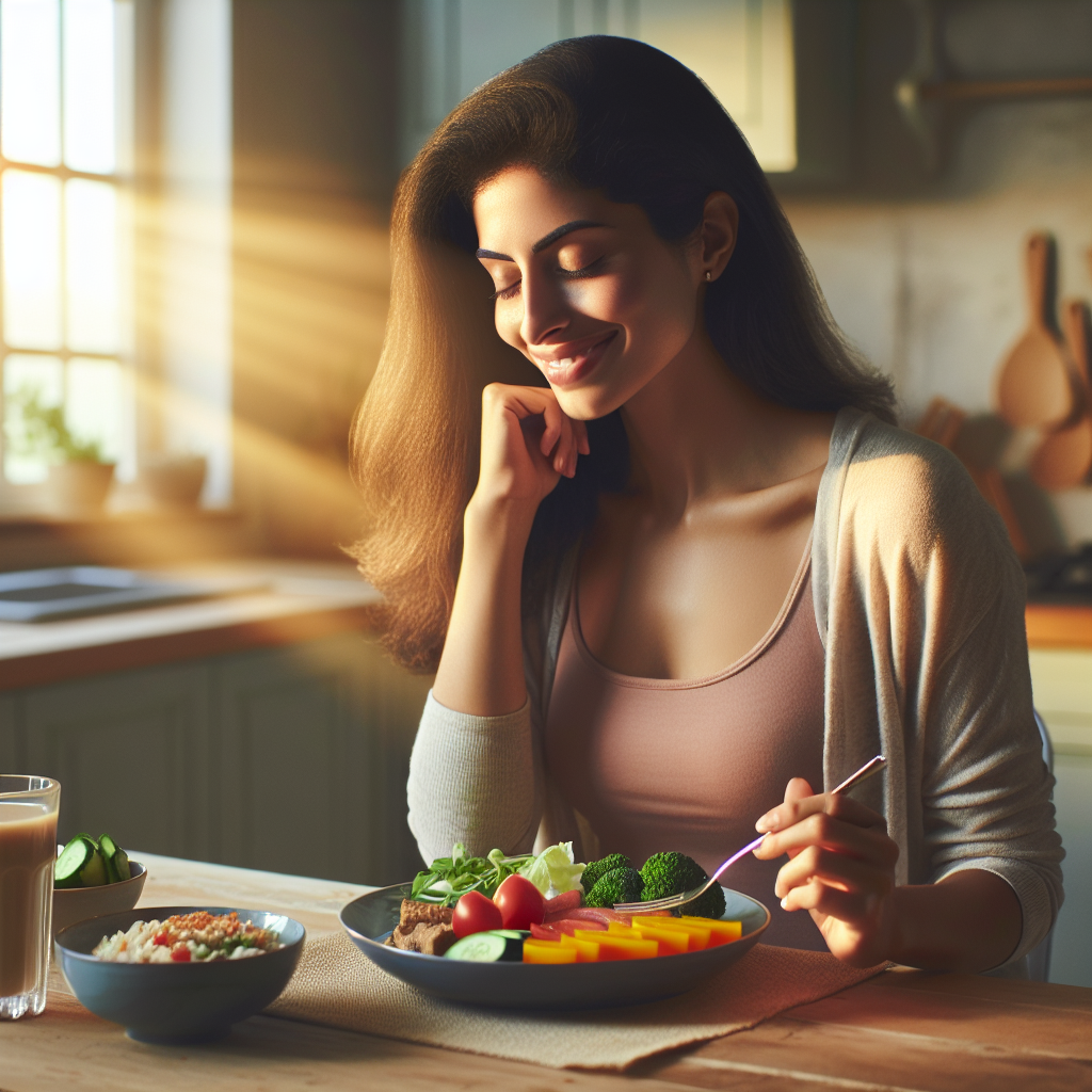 Nimm dir Zeit beim Essen und genieße jede Mahlzeit bewusst. So bemerkst du besser, wann du satt bist, und isst automatisch weniger.