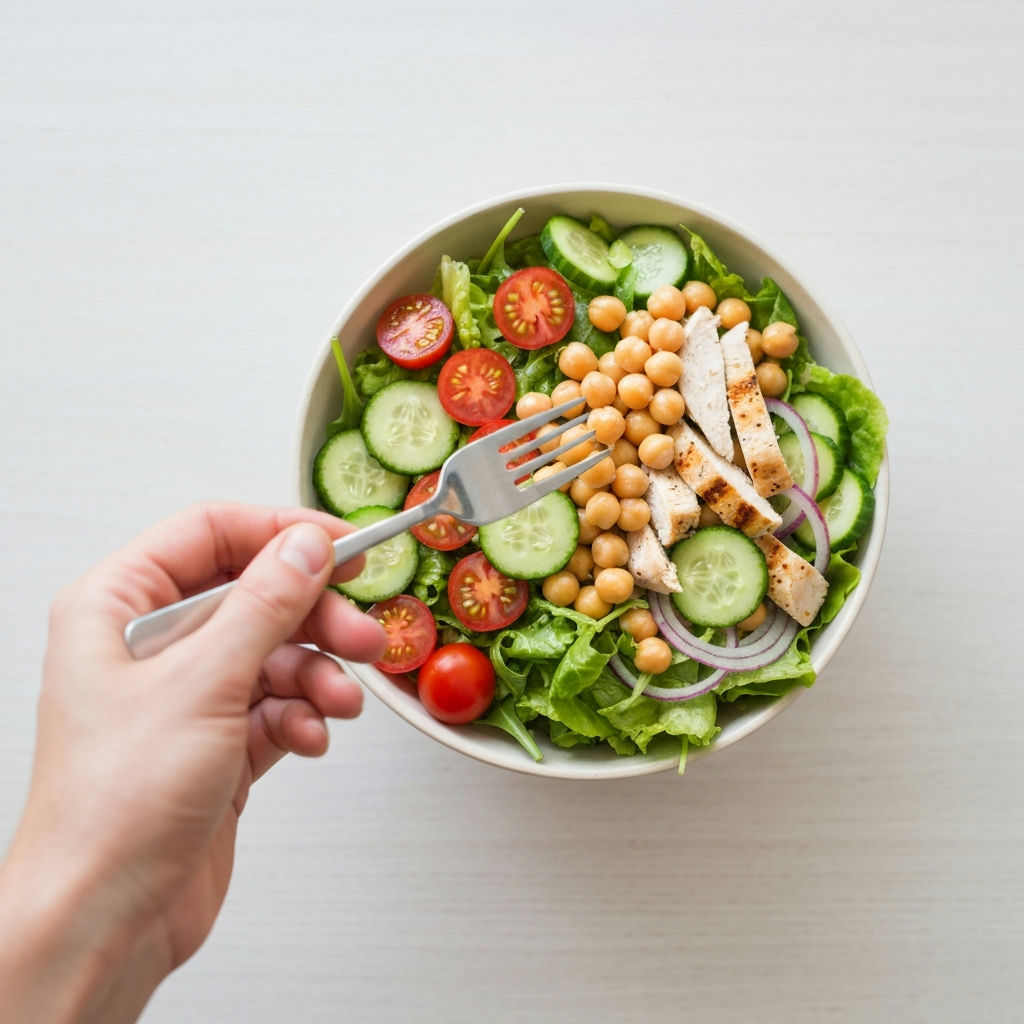 Setze auf Lebensmittel, die dich lange satt machen und wenig Kalorien enthalten. Dazu gehören Gemüse, Salate, Hülsenfrüchte, mageres Fleisch, Fisch und fettarmer Quark. So lässt sich Abnehmen Ohne Hunger leichter umsetzen.
